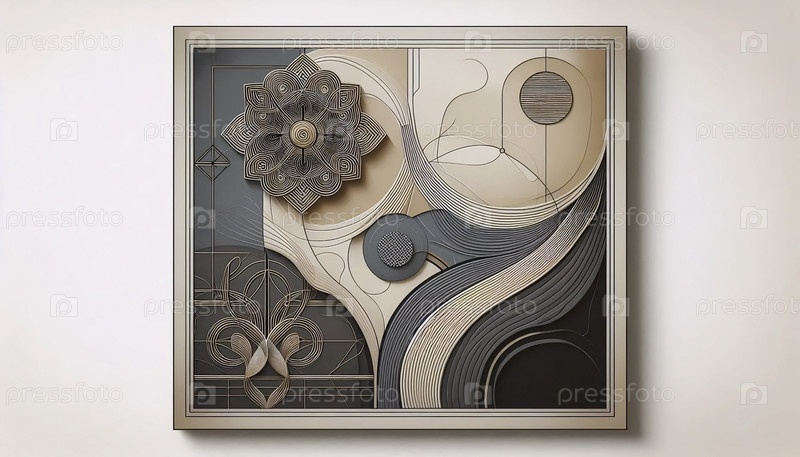 Абстрактный бежевый и черный стеновой печат, Ai generated image