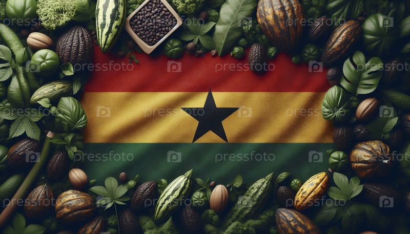 Гаанский флаг в золотой истории и кентской ткани, Ai generated image