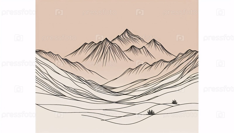 Минималистское линейное искусство горного хребта, Ai generated image
