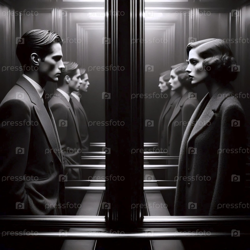 Встреча в зеркале лифта, Ai generated image