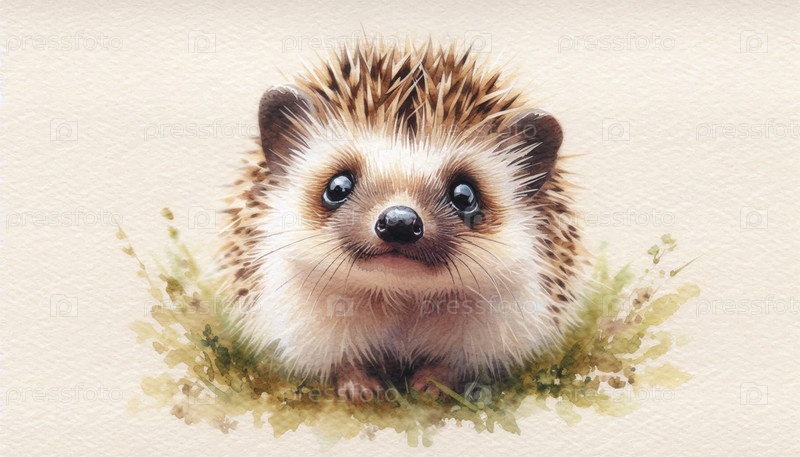 Cute Hedgehog акварельный художественный печат, Ai generated image