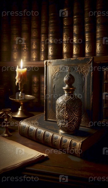Оформленный макет бутылки парфюма в винтажном стиле, опирающийся на открытое изображение, созданное AI