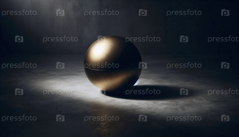 Мокет твердой бронзовой сферы на грубом темном бетонном полу, Ai generated image