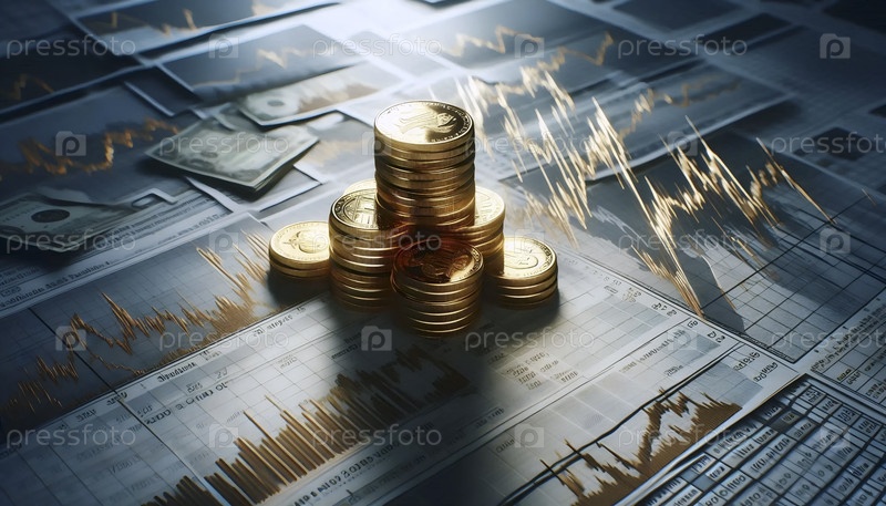 Таблица золотых монет на финансовых графиках, Ai generated image