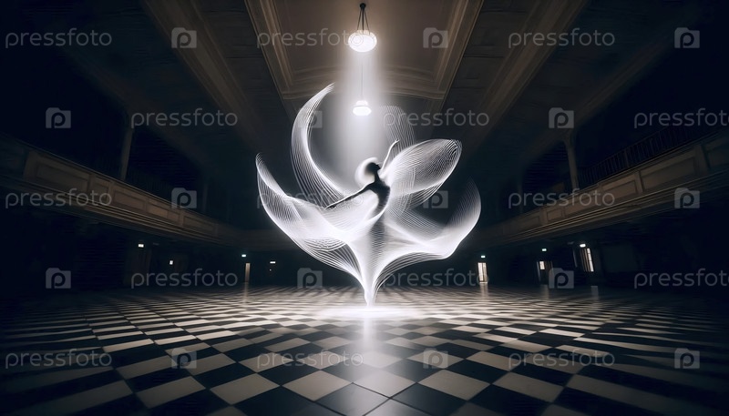 Фотография с длинной экспозицией одинокого танцора в большом зале, Ai generated image