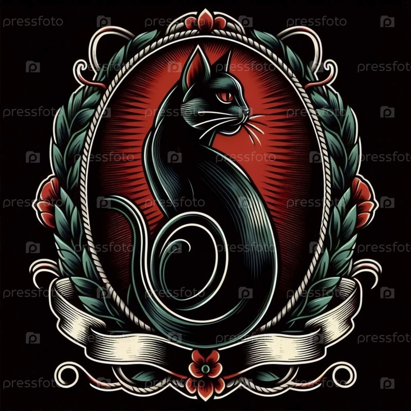 Старомодный татуировки в стиле моряка кот, Ai generated image