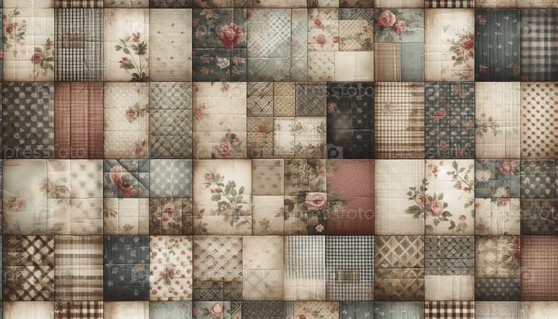 A vintage shabby chic quilting patchwork seamless pattern, Ai generated image (Ай создал изображение с помощью пачворка без швов)
