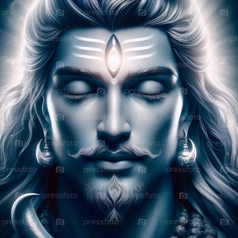 Господь Шива с сияющим третьим глазом, Ai generated image