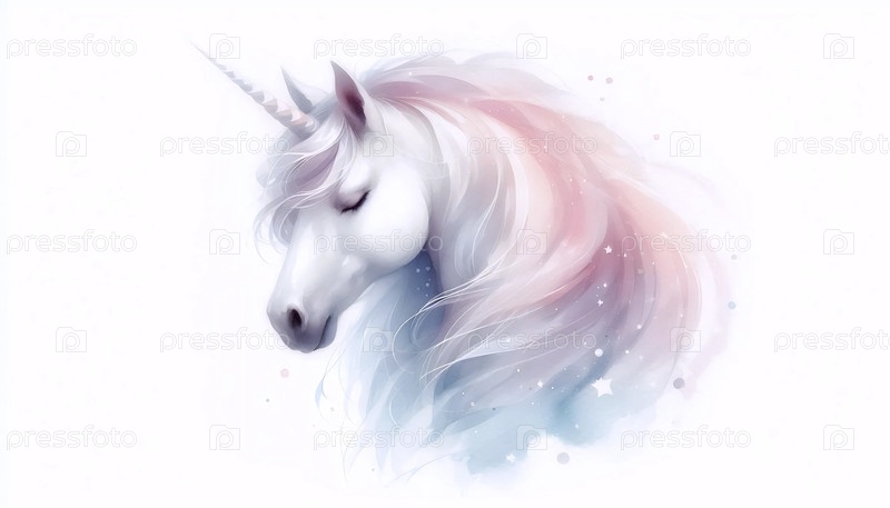 Единорог в технике акварели, Ai generated image