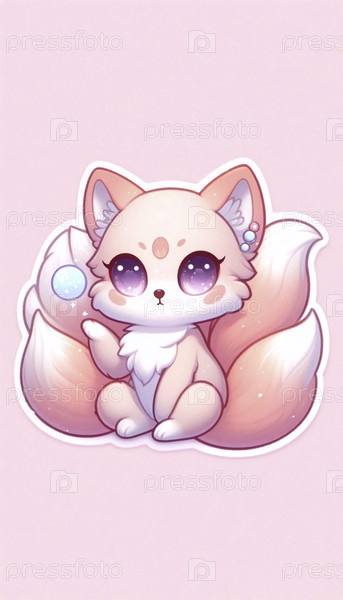 Милый стикер кавайи пастельного кицуне, Ai generated image