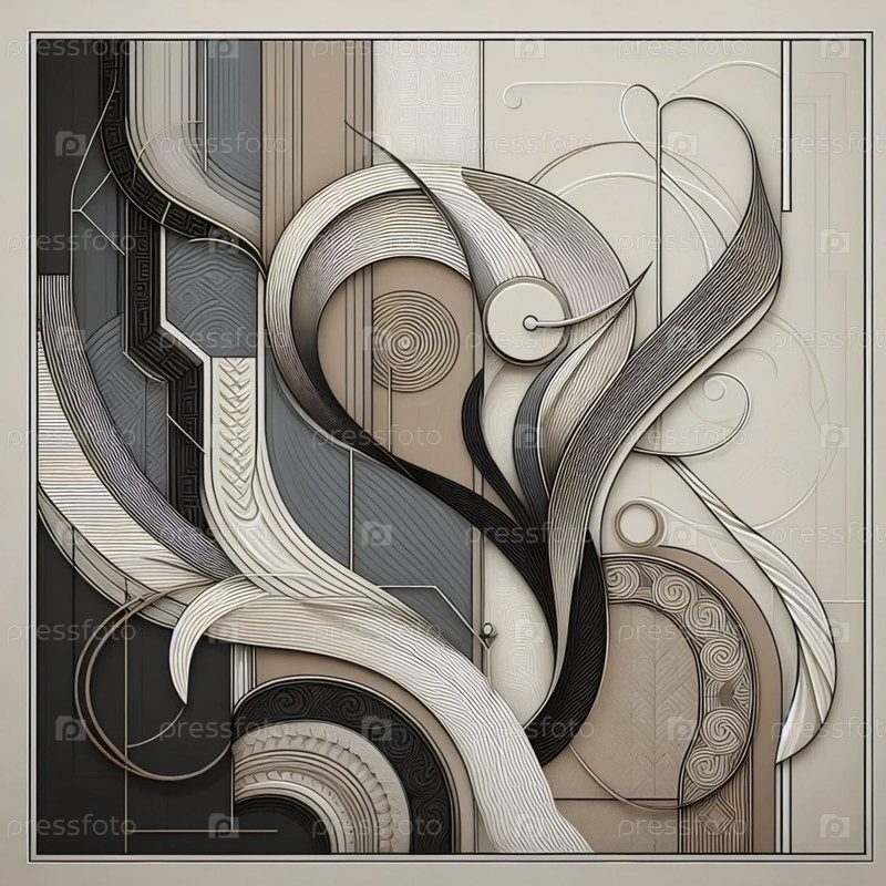 Абстрактный бежевый и черный стеновой печат, Ai generated image