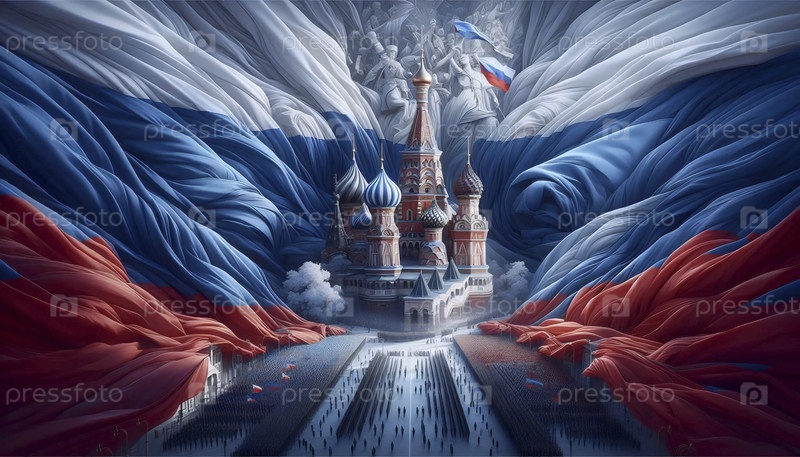 Российский флаг на военном параде и исторической победе, Ai generated image