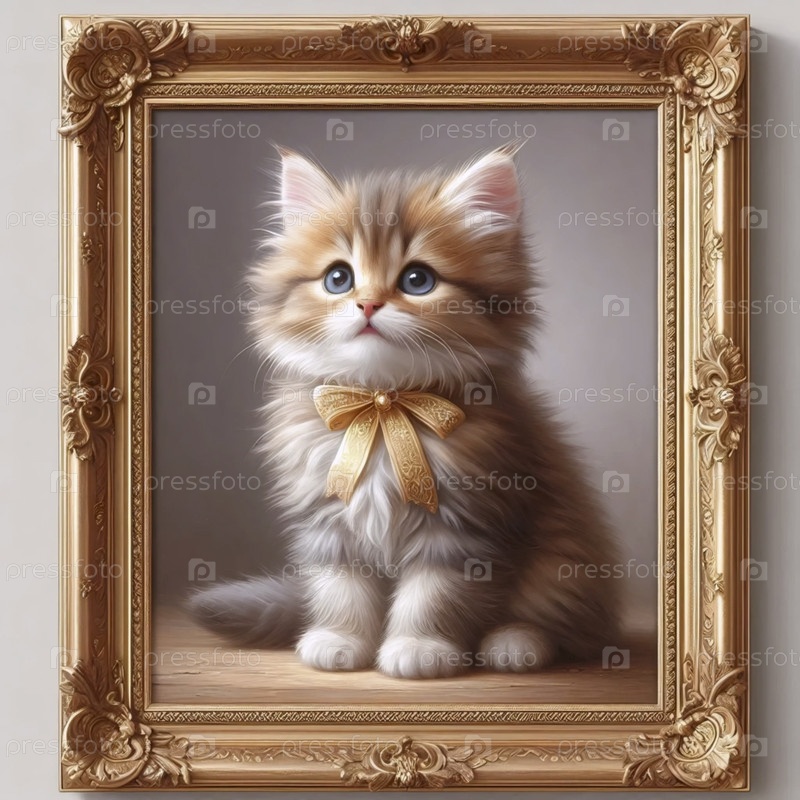 Миниатюрная масляная живопись Милая кошка в золотой раме, A Ai generated image