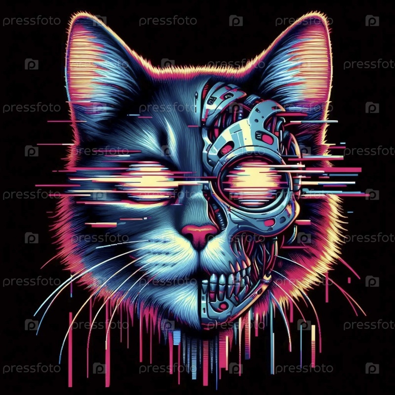 Портрет киборговой кошки, созданный с помощью glitch-art, Ai generated image
