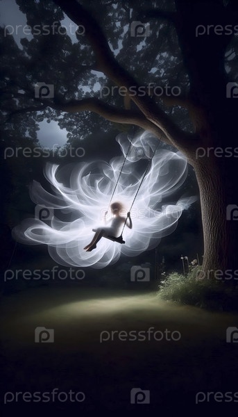Фотография с длительным воздействием ребенка на качелях в сумерках, Ai generated image