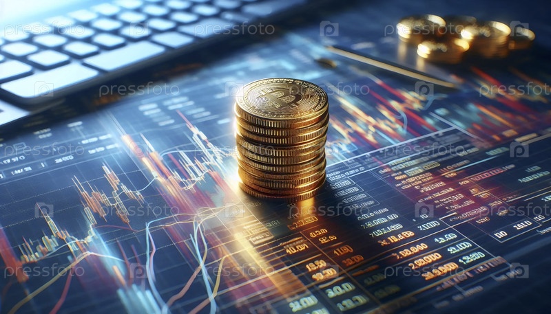 Таблица золотых монет на финансовых графиках, Ai generated image