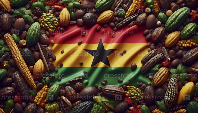 Гаанский флаг в золотой истории и кентской ткани, Ai generated image