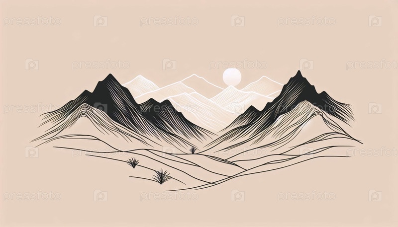 Минималистское линейное искусство горного хребта, Ai generated image