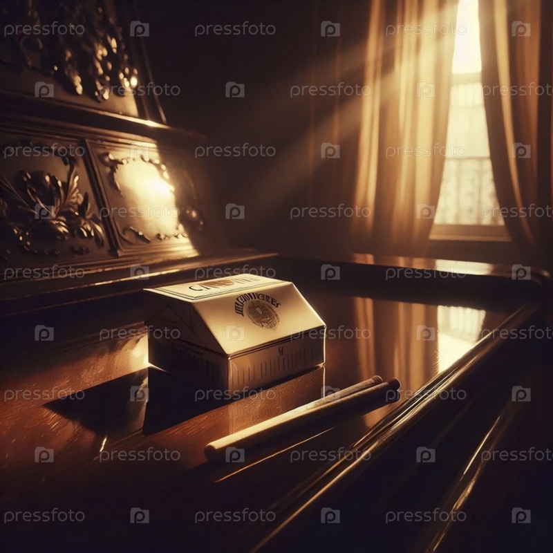 Полная пачка сигарет на пианино, Ай создал изображение