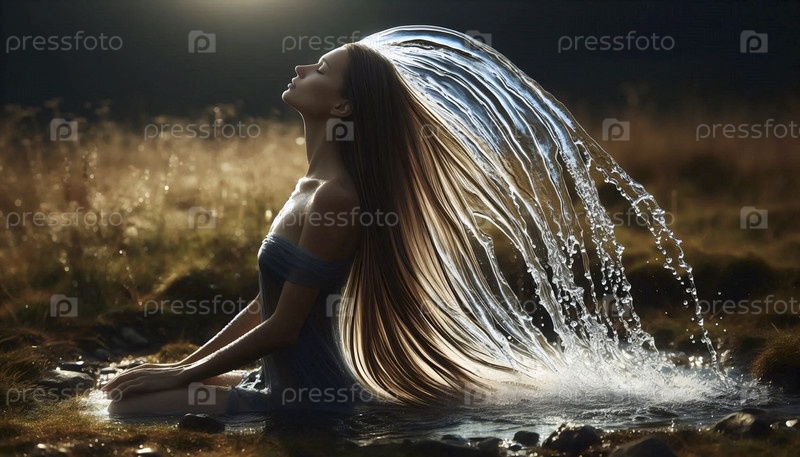 Женщина с волосами текучей воды, Ai создал изображение