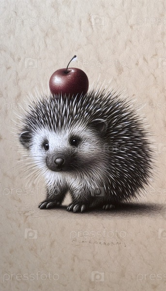 Маленький Козерог с яблоком на перьях чернил рисует художественную печать, Ai generated image