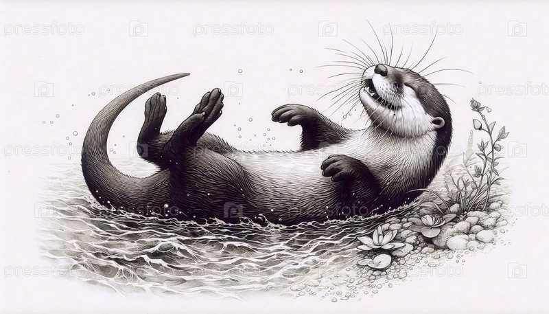 Плавучая морская выдра чернила рисования арт-принт, Ai generated image