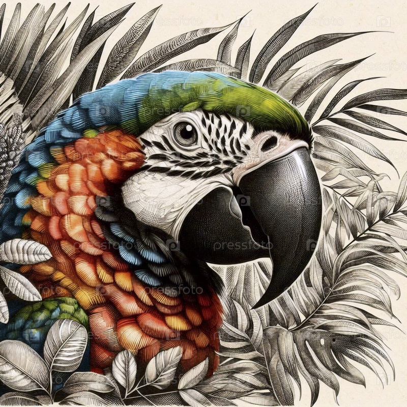 Цветный чернил попугай, рисующий художественную печать, Ai generated image