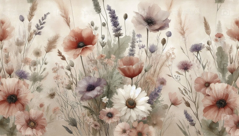 Дикие цветы Пастели A Boho flowers Бесшовный шаблон, Ai generated image