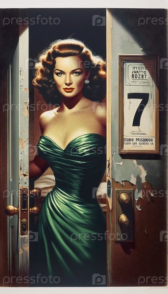 Винтажный кинопостер с женщиной в дверном проеме, Ai generated image