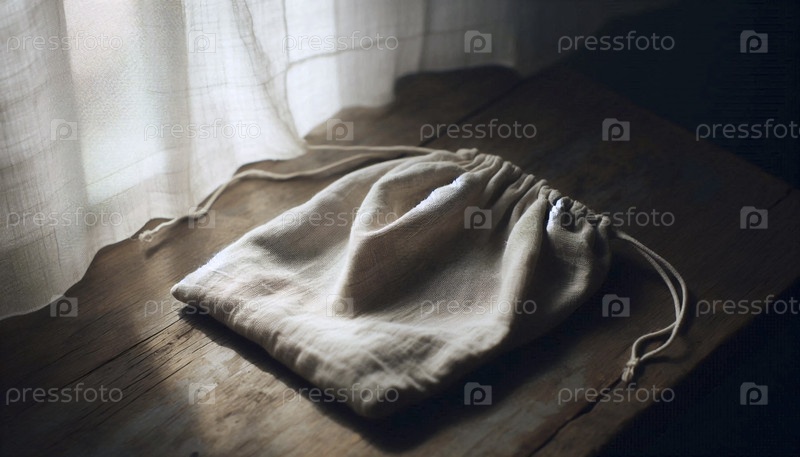 Макет минималистического некрасивого льняного мешка на выветрившемся дубе, Ai generated image