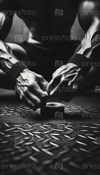 Трансформационный момент личного фитнеса: руки, обернувшиеся в атлетическую ленту с сосредоточенной решимостью, Ai generated image