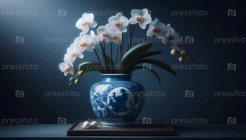 Орхидея в китайской вазе, Ai generated image