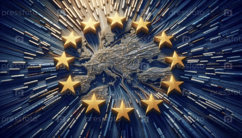 Флаг Европейского союза сделан из взаимосвязанных железнодорожных сетей, Ai generated image