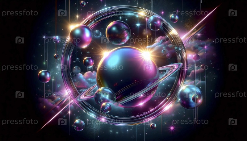 Сайберпанкский дизайн космических бамперных наклеек, Ai generated image A