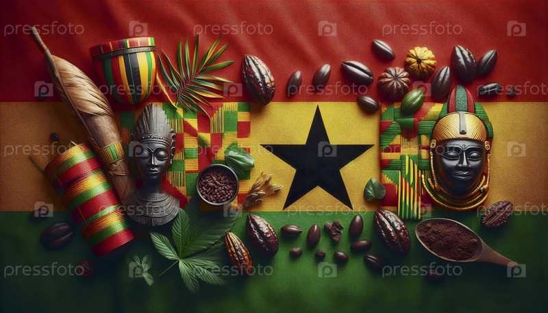 Гаанский флаг в золотой истории и кентской ткани, Ai generated image