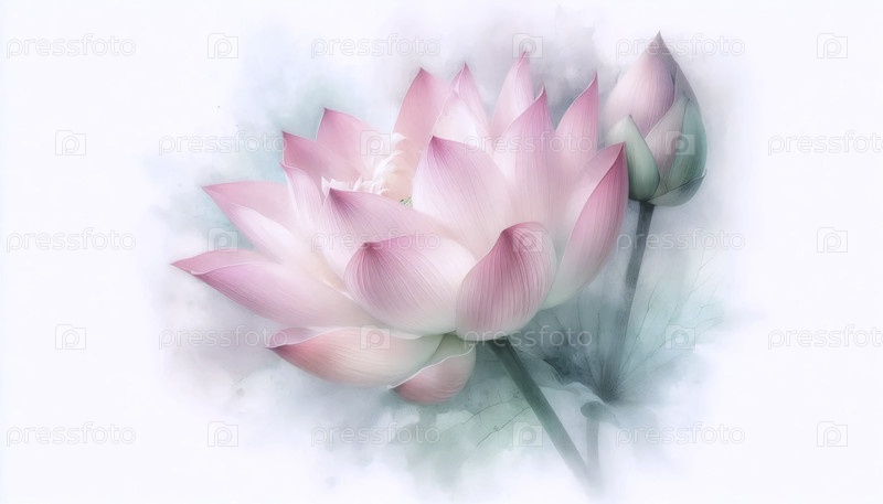 Фотографическая печать в акварели розового лотоса, Ai generated image