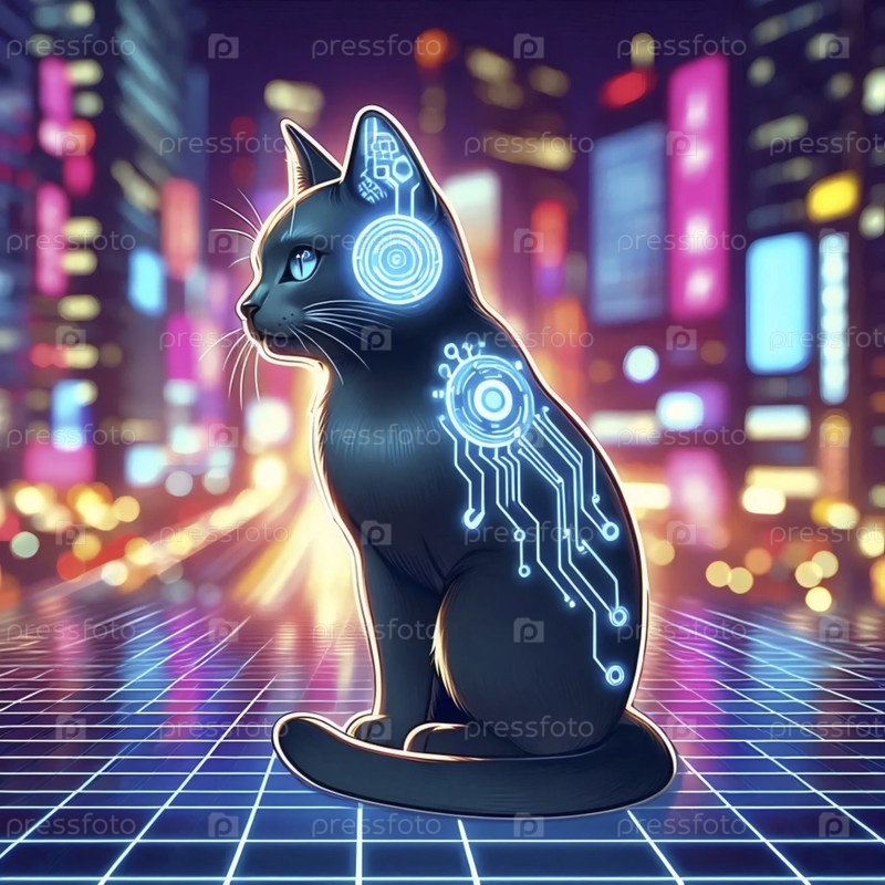Акционный снимок хакерской кошки на крыше, Ai generated image