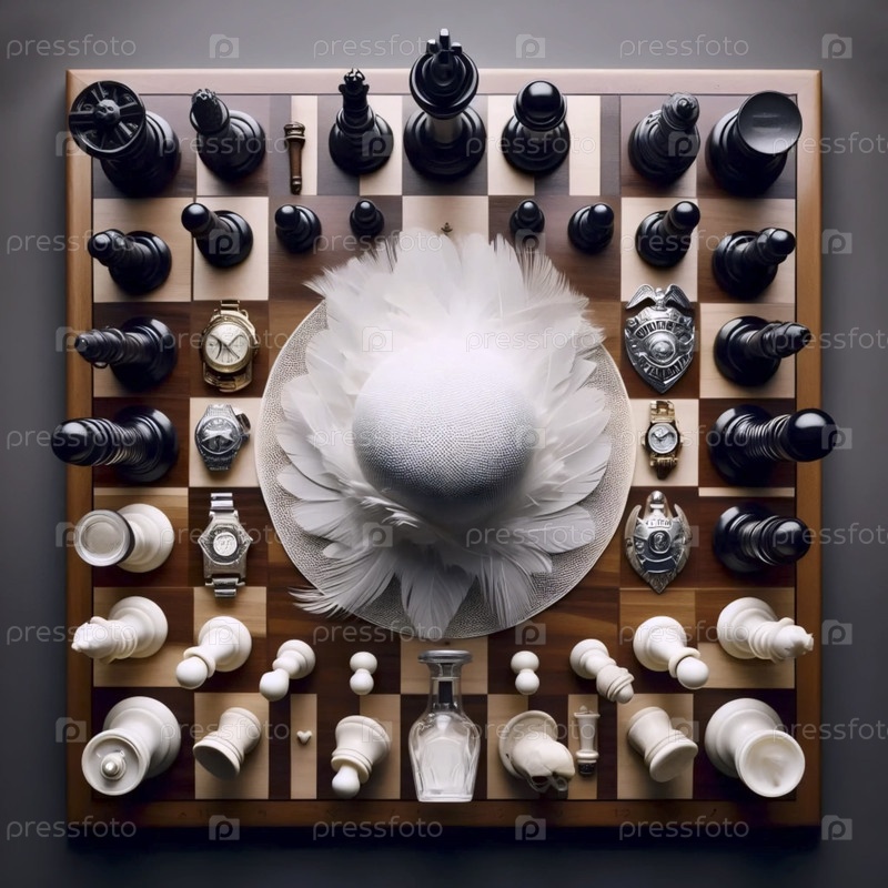 Шахматная доска с личными предметами в качестве фигур, Ai generated image A