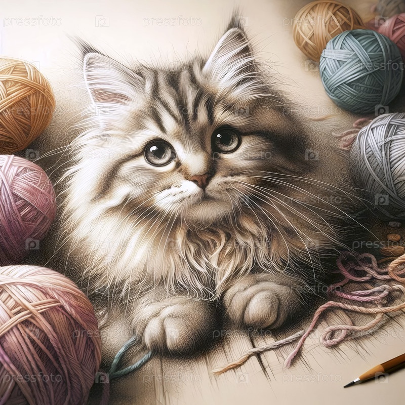 A playful kitten ink drawing art print, Ai generated image Играющийся котенок чернила рисует художественную печать, Ай создал изображение