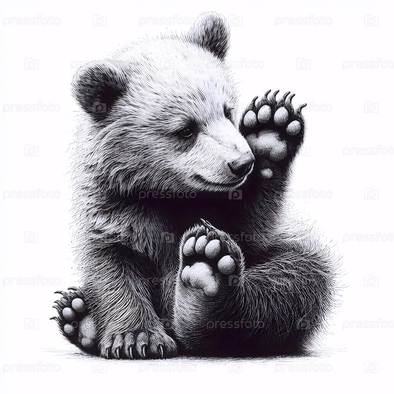 Playful Bear Cub чернила A ink drawing art print, Ai создал изображение