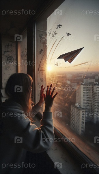 Ребенок, отправляющий сообщение с помощью бумажного самолета, Ай создал изображение