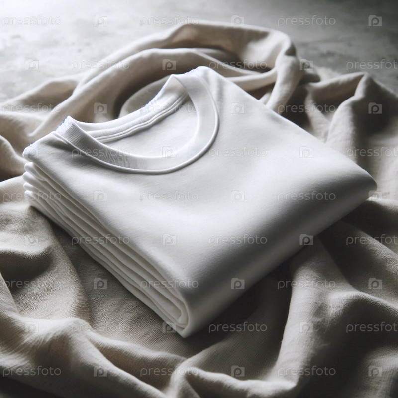 Мокет футболок из чистой белой органической хлопковой ткани, нежно сложенный на холсте из конопли, Ai generated image