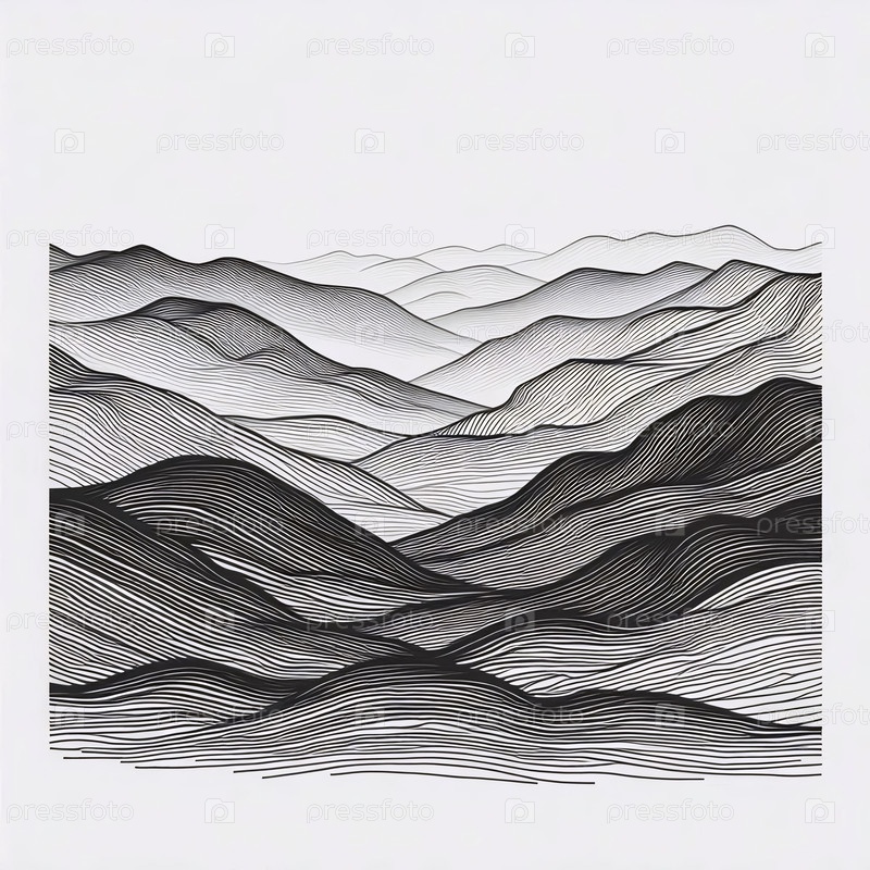 Минималистский горный хребет чернила A drawing ink art print, Ai generated image
