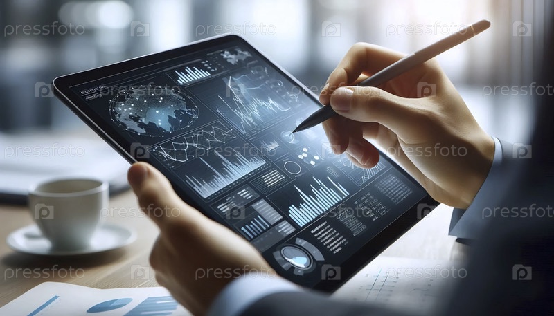 Человек анализирует квартальный отчет на планшете, Ai generated image