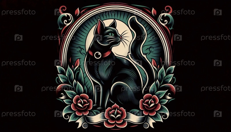 Старомодный татуировки в стиле моряка кот, Ai generated image