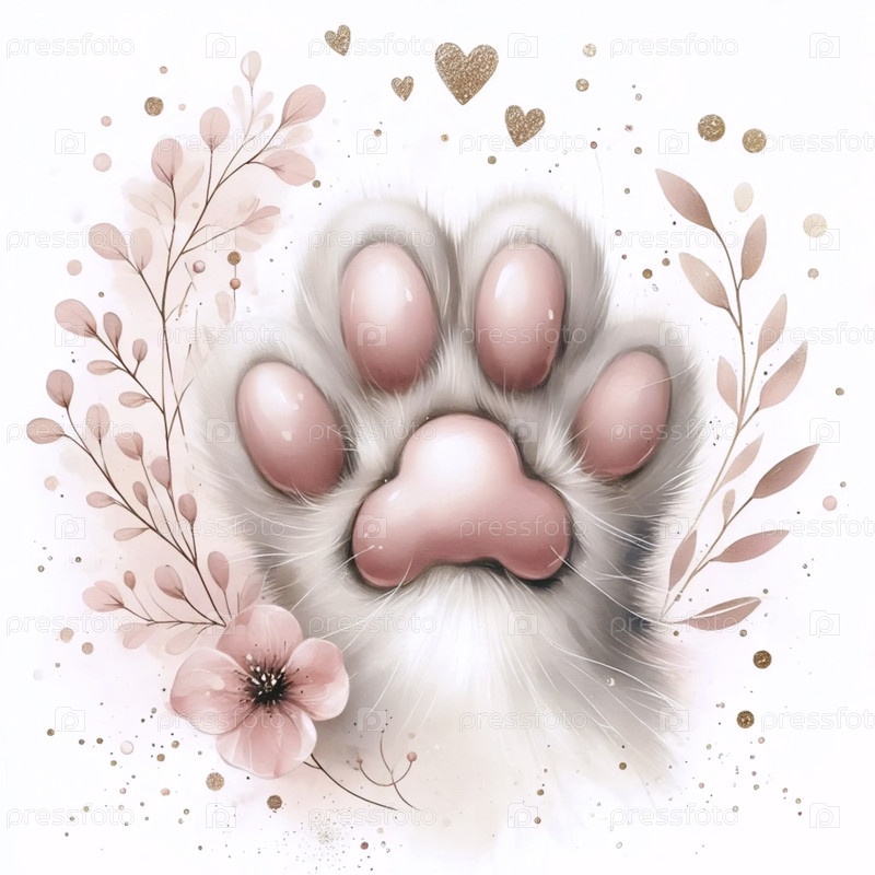 акварельная кошачая лапа