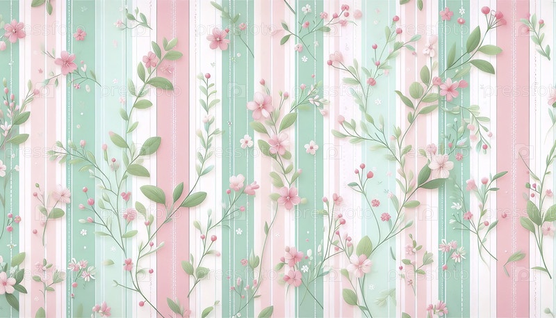 Образец с розовыми цветами и полосами Весенний цветочный милый, Ai generated image