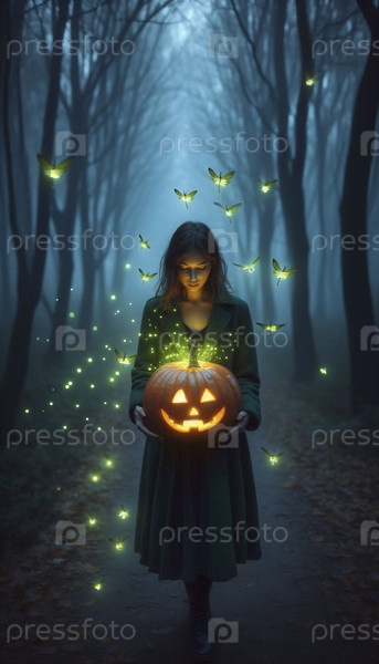 Охранитель свечей в тыквенном фонарике, Ai generated image