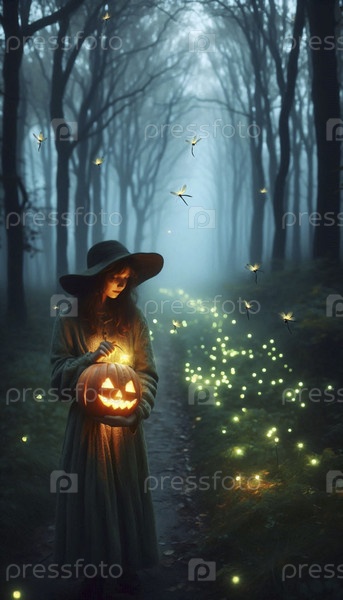 Охранитель свечей в тыквенном фонарике, Ai generated image