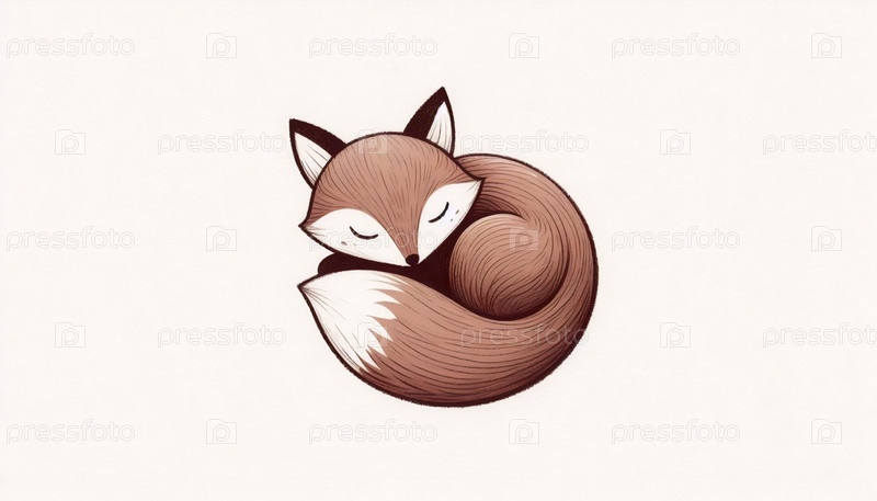 Спящая лиса чернила рисование арт-принт, Ai generated image A